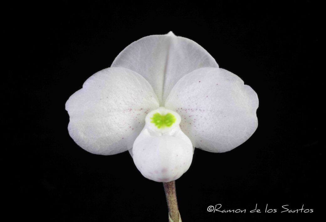 May 07, 2025 20252293 Paph. thaianum ‘Anitchka’ (species) AM 82 Exhibited by Ramon de los Santos Description: One well-held flower on one 5-cm inflorescence; flower white, minutely spotted pink; dorsal sepal and petals obovate; pouch white, interior lightly spotted dark maroon; staminode green; substance firm; texture matte. Measurements in cm.  Ns  5.2  nsv […]